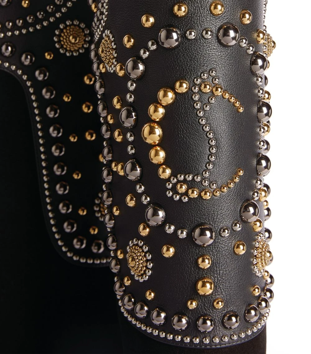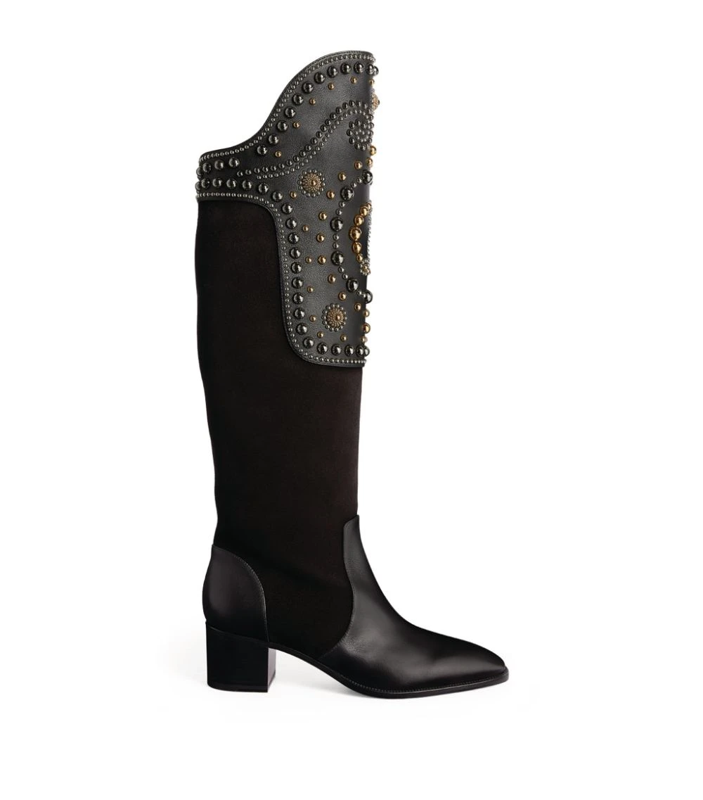 Using the classic Camarguaise boot as its reference point, Christian Louboutin introduces the Alixos boots. Imagined with a refined almond toe and comfortable block heel, the pair is infused with the Parisian label’s signature charm by way of the hand-embellished knee brace, complete with an intricate CL coat of arms to the fore.