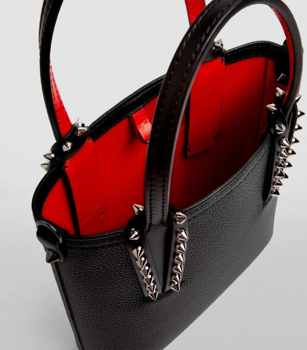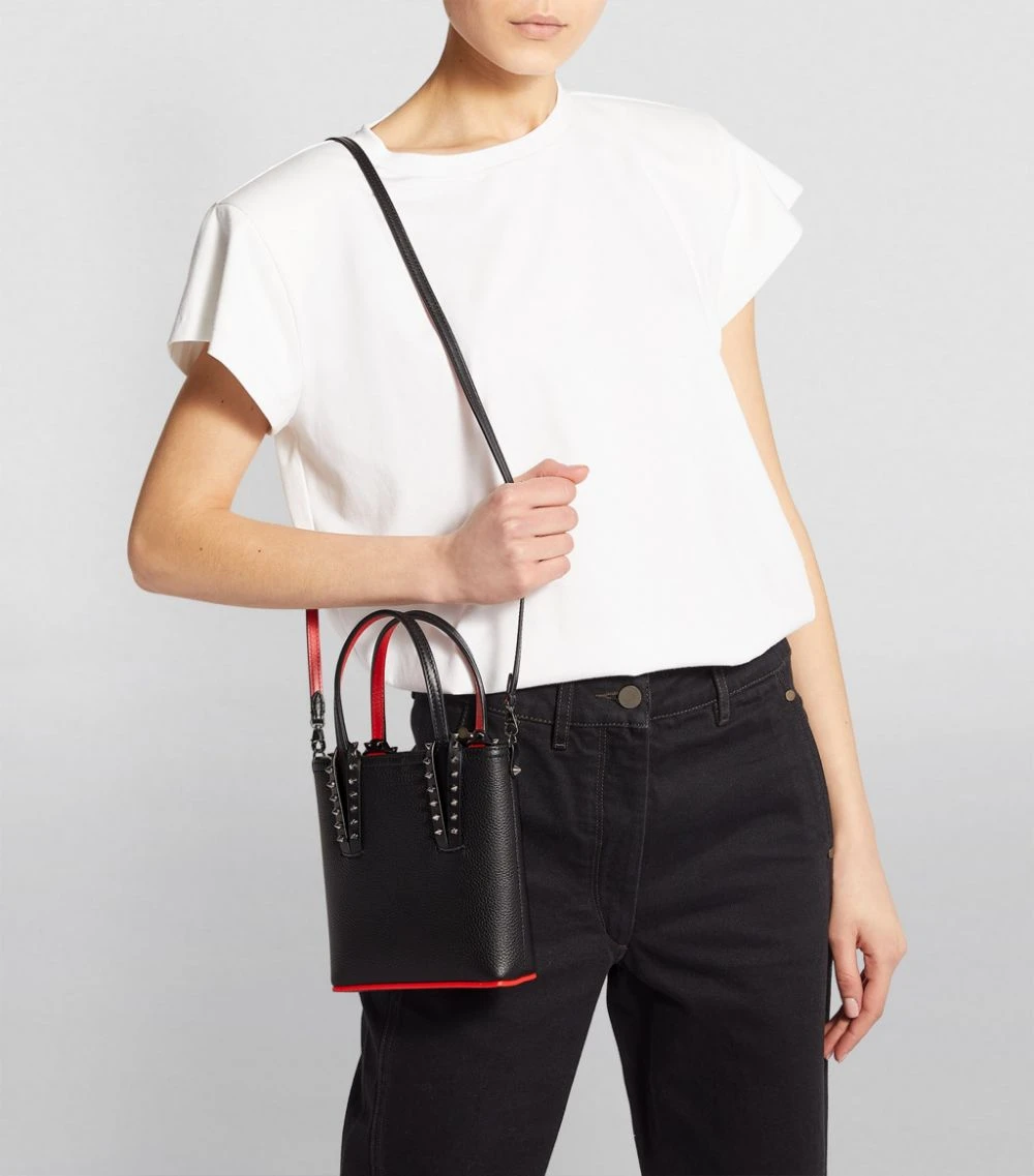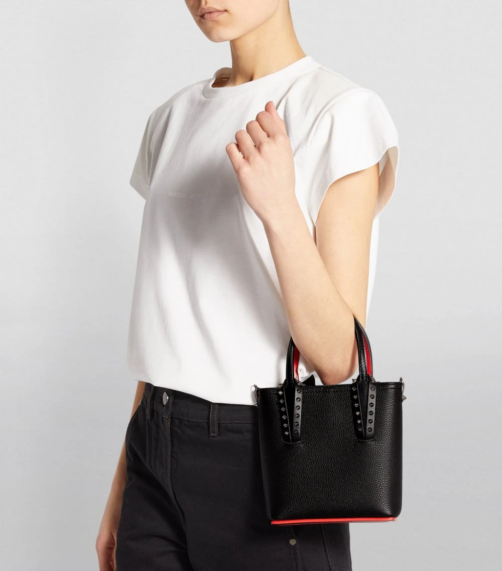Christian Louboutin demonstrates with the mini Cabata tote bag that it takes the same design approach to its line-up of luxury accessories as its world-famous stilettos: from the bottom up. A flash of iconic red decorates the base of this surprisingly spacious accessory, complete with the Louboutin logo in cursive script, while a detachable, adjustable strap allows for versatile wear.