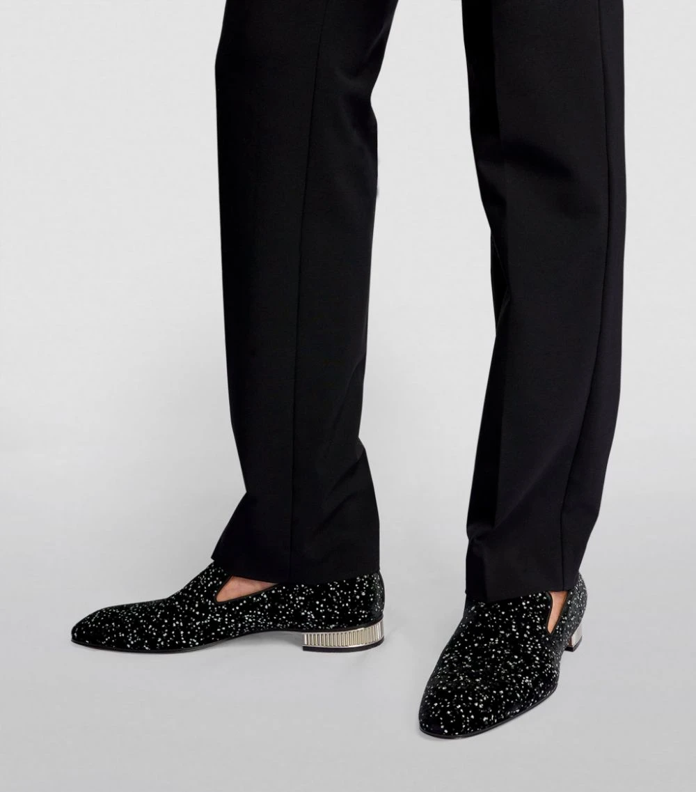 Christian Louboutin has been a trailblazer in the world of footwear since its founding in 1991 – and today, the same luxury ethos is showcased in each and every creation. Attesting to that are the Colonnaki loafers, showcasing a velvet construction adorned with a metallic details inspired by the starry sky. Meanwhile, the silver-tone heel echoes the architecture of Athenian columns, quietly but confidently nodding to the Maison’s elegant savoir-faire.Please note, Christian Louboutin’s signature lacquered soles will wear out with use; this is normal wear and tear and is not considered to be a manufacturing defect. Please try these shoes on a carpeted surface, as any damage to the soles may prevent us from accepting returns.