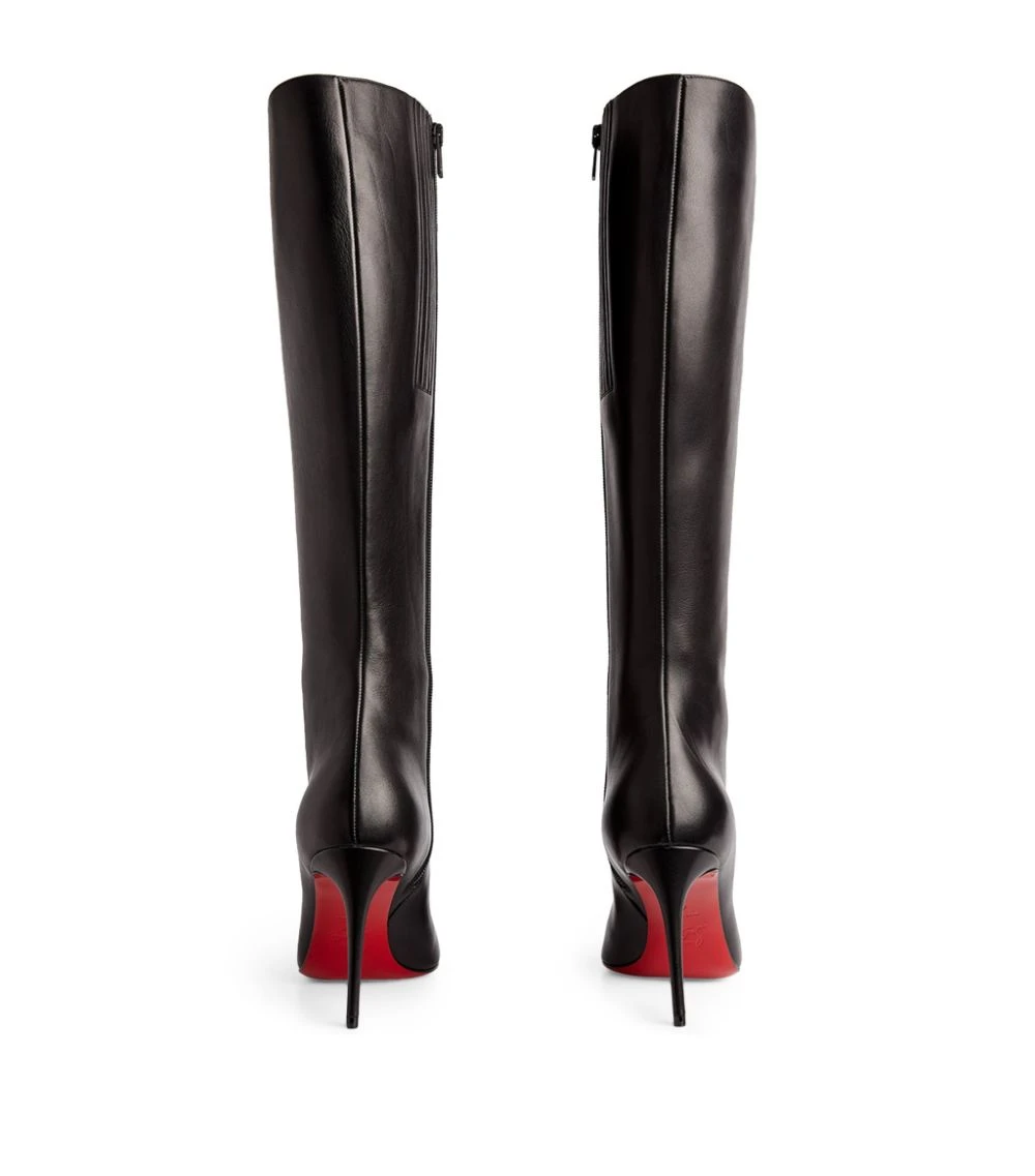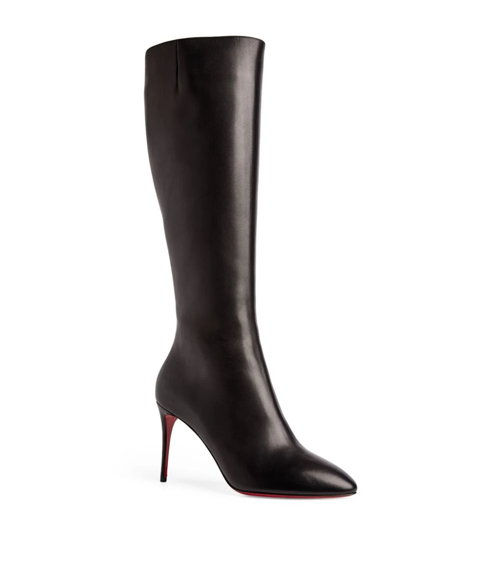 Christian Louboutin takes on a footwear classic with the Eloise boots. Crafted from smooth calfskin leather, their classic knee-high silhouette is elevated upon a stiletto heel, with a soft almond toe and concealed zip adding timeless appeal. Nevertheless, any anonymity is at once withdrawn at the sight of the style’s scarlet red soles – a signature that could only belong to the Parisian shoemaker.