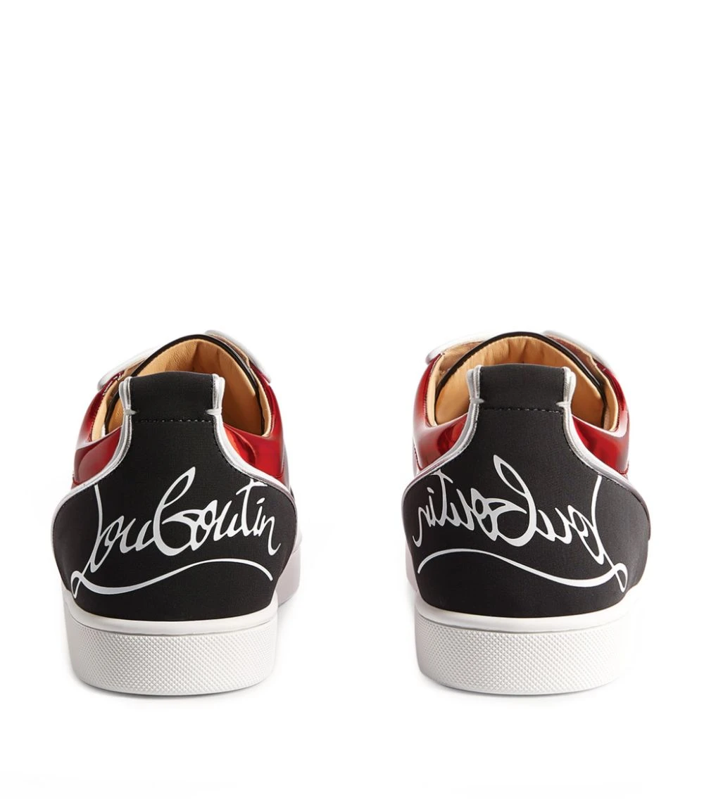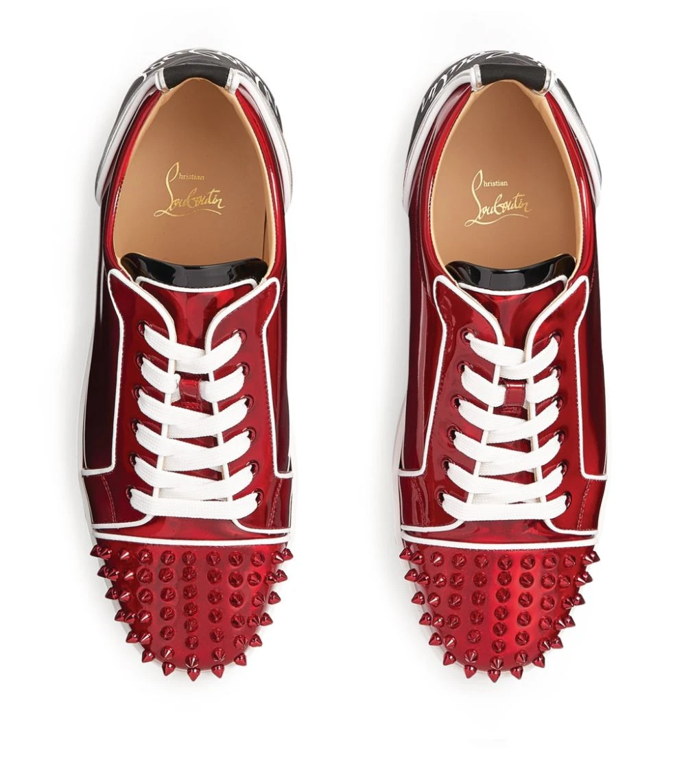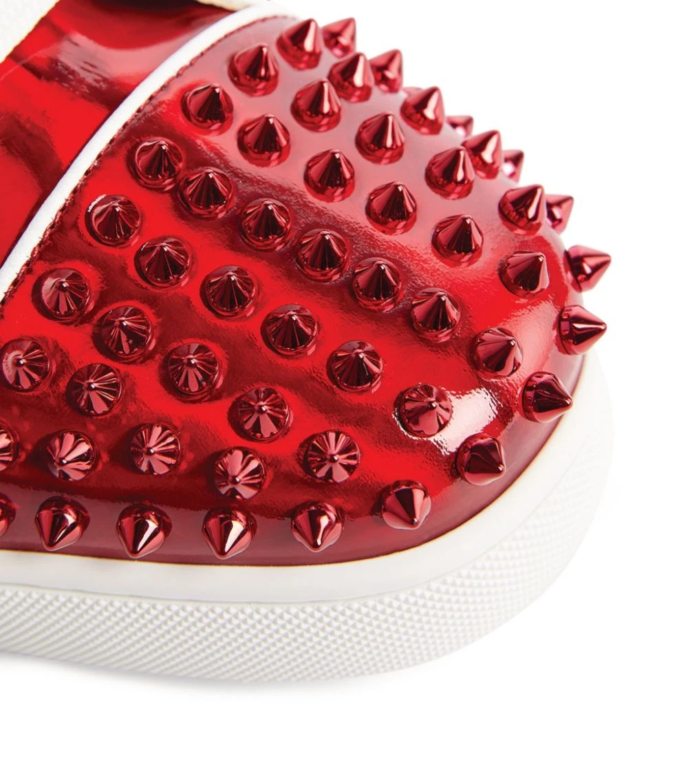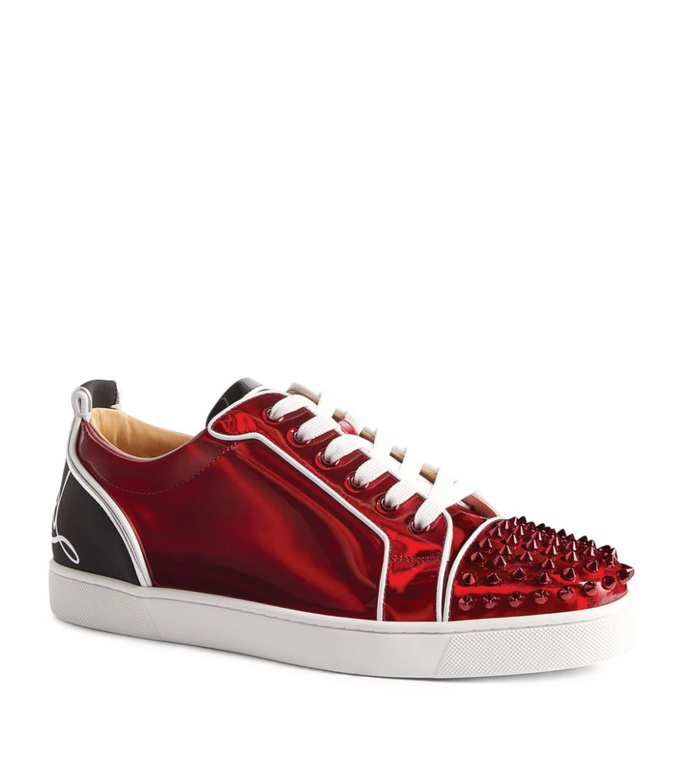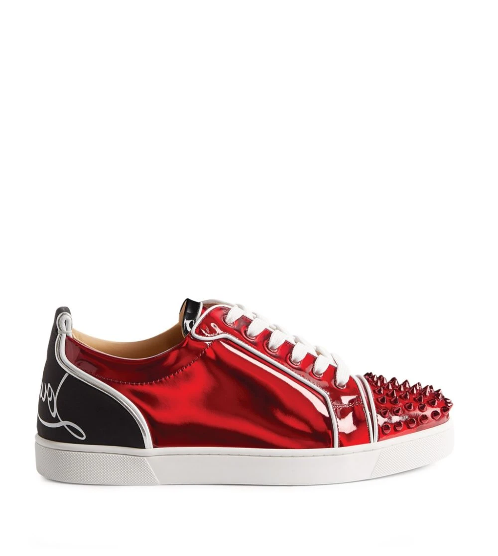 Christian Louboutin’s studded toe caps have become almost as iconic as its line-up of red-soled shoes, and this sumptuous patent leather pair of Fun Louis Junior Spikes sneakers harmonises those two daring details in a design that feels effortlessly wearable. The contrast colour use spans from its laces to the flatform rubber sole, creating a look that is unequivocally cool while being unmistakably of the Maison.
