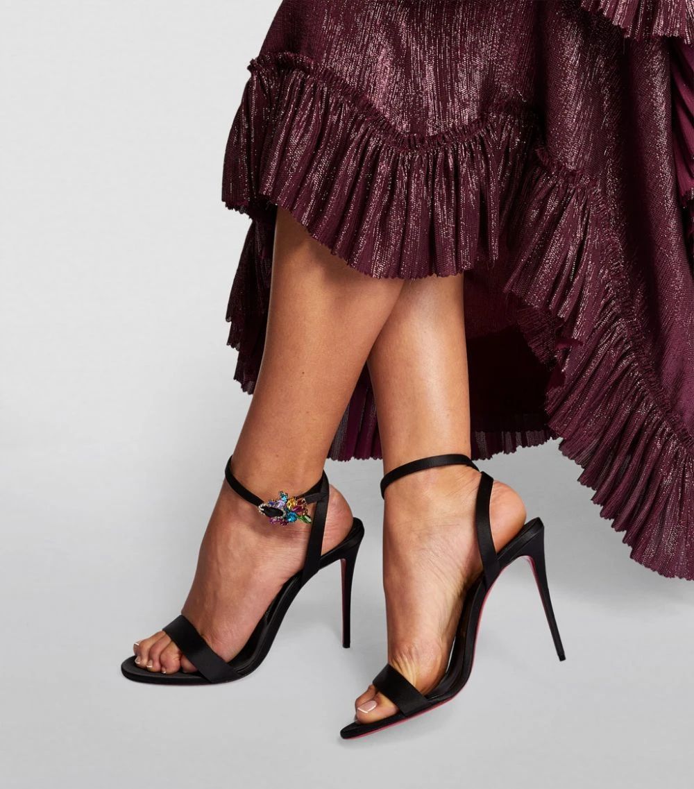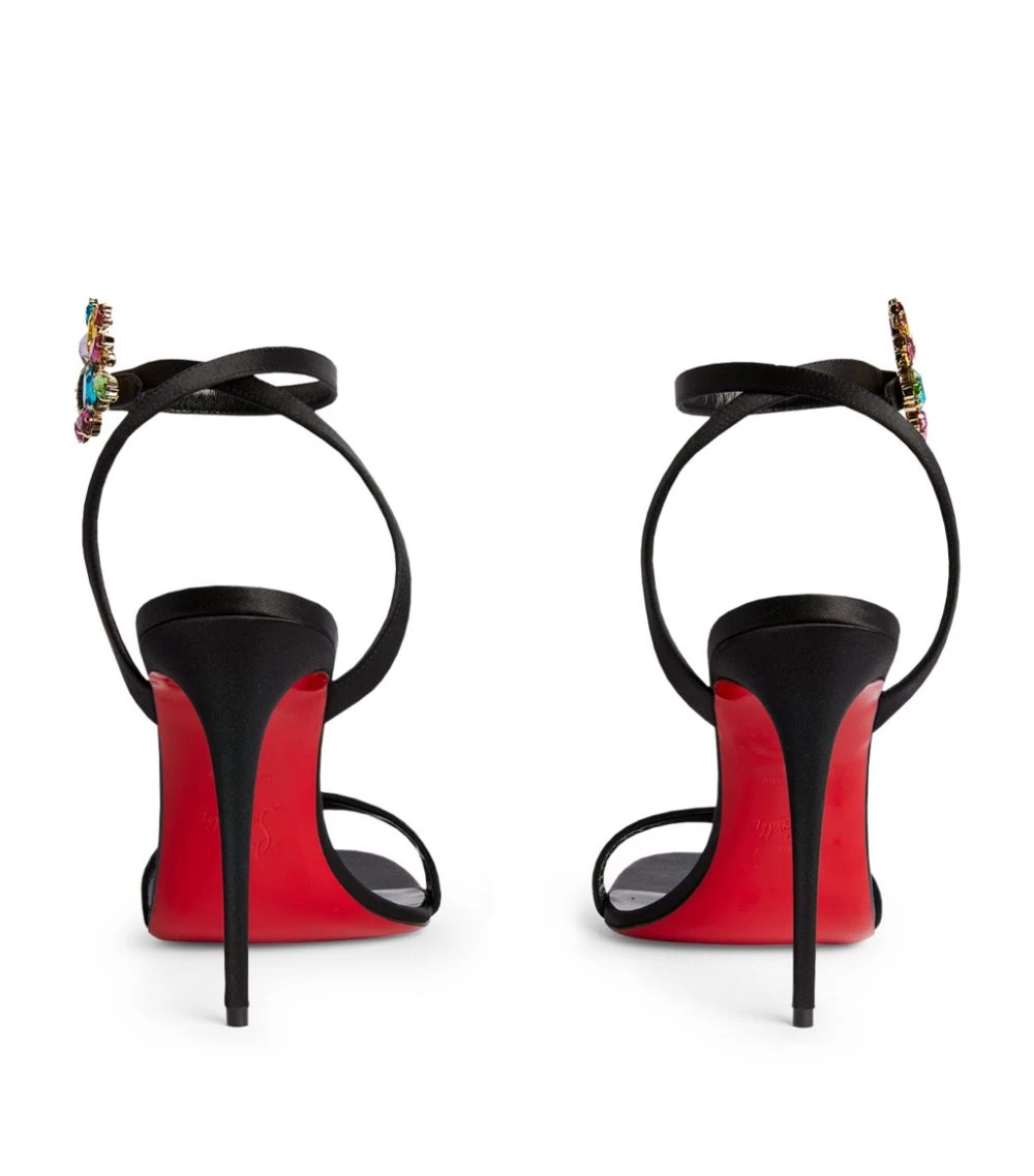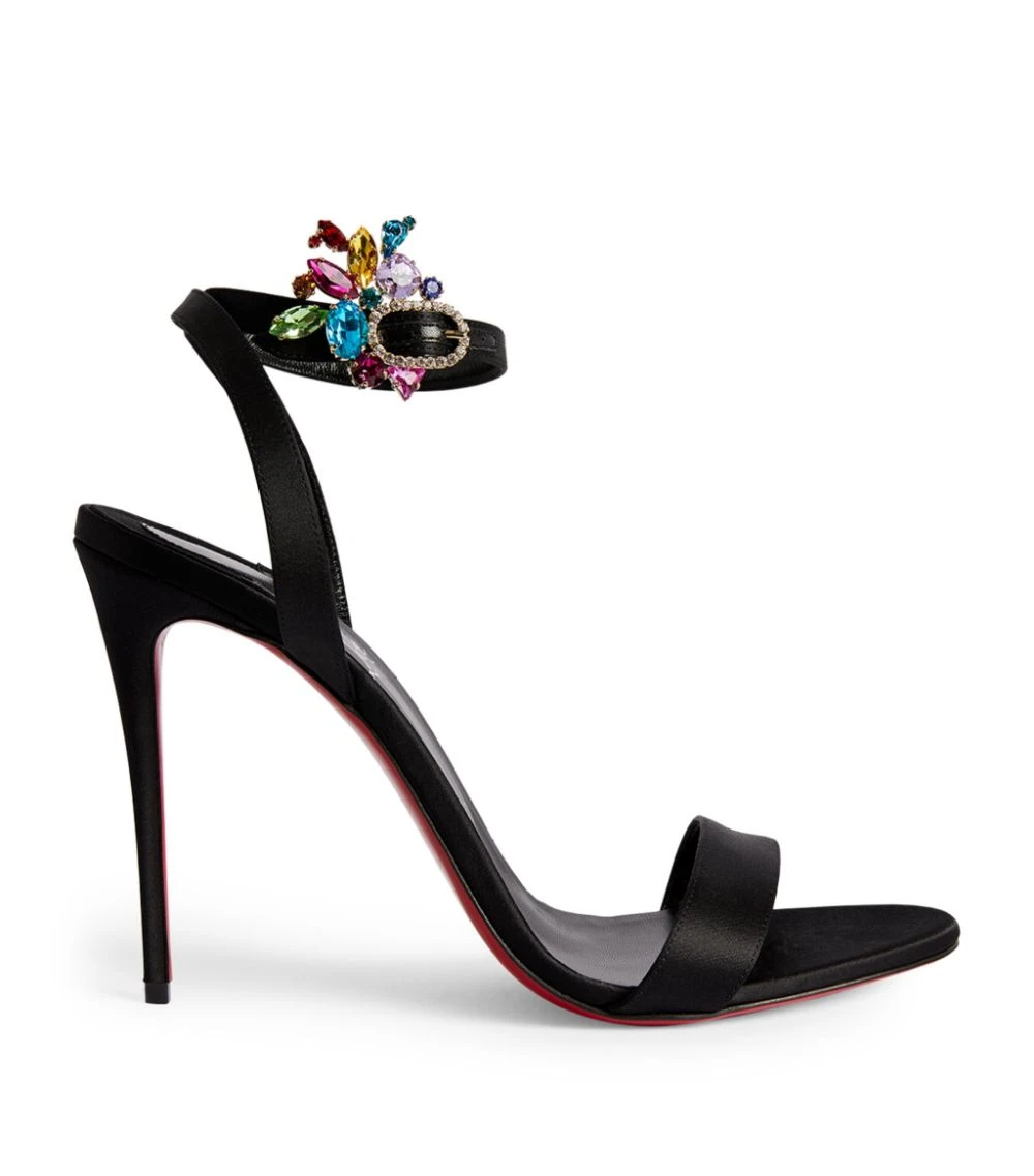 The Goldie Joli sandals from Christian Louboutin delicately bridge the gap between minimalism and maximalism. Enhanced and exposed, the foot follows the natural curve that’s granted from the stiletto heel, while the satin crepe straps provide support. In contrast, the buckle closure is encrusted with multicoloured rhinestones – bringing the feminine touch the Maison is renowned for.Please note, Christian Louboutin’s signature lacquered soles will wear out with use; this is normal wear and tear and is not considered to be a manufacturing defect. Please try these shoes on a carpeted surface, as any damage to the soles may prevent us from accepting returns.