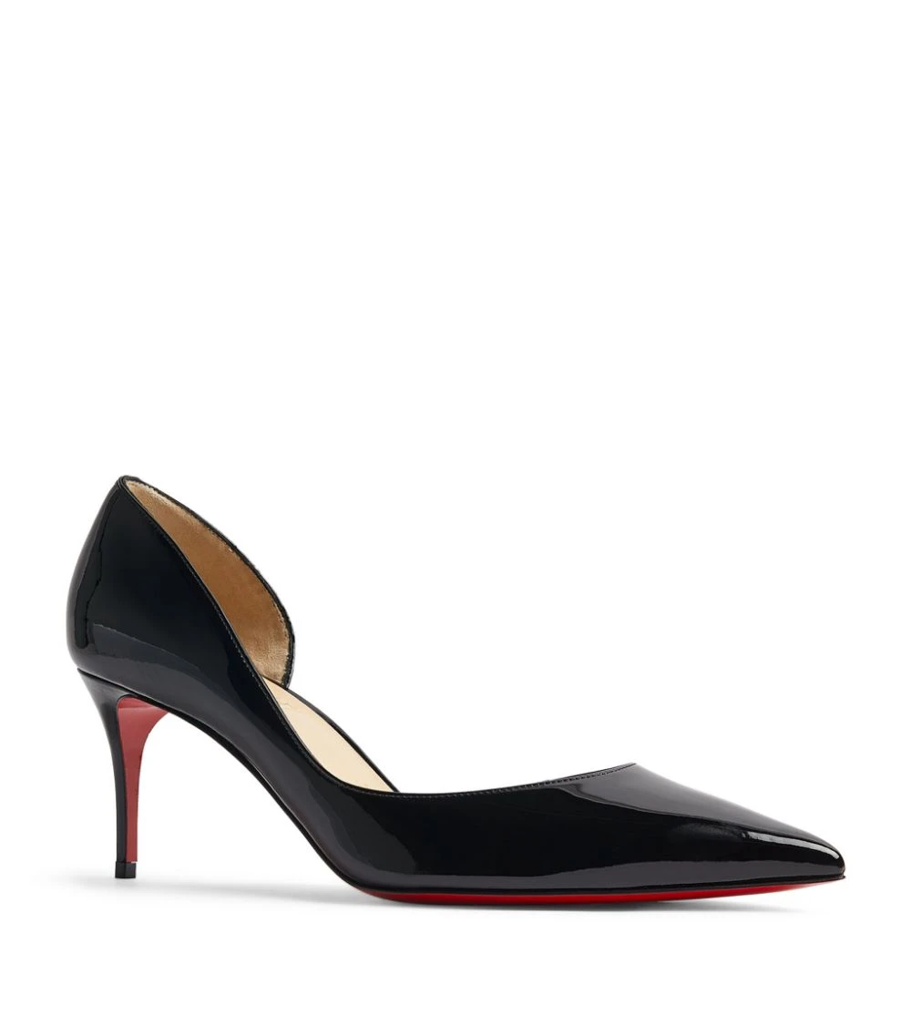 Crafted from high-shine patent calf leather, the timeless pointed-toe silhouette of the Iriza pumps from Christian Louboutin is elevated to a vertiginous height upon a slim heel, with the opening to the inner side revealing the gentle curve of your foot’s arch. It’s a design that sticks to the style’s tried-and-tested formula, and yet any anonymity it might have is at once withdrawn at the sight of the scarlet red soles.