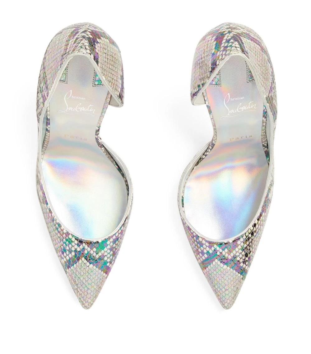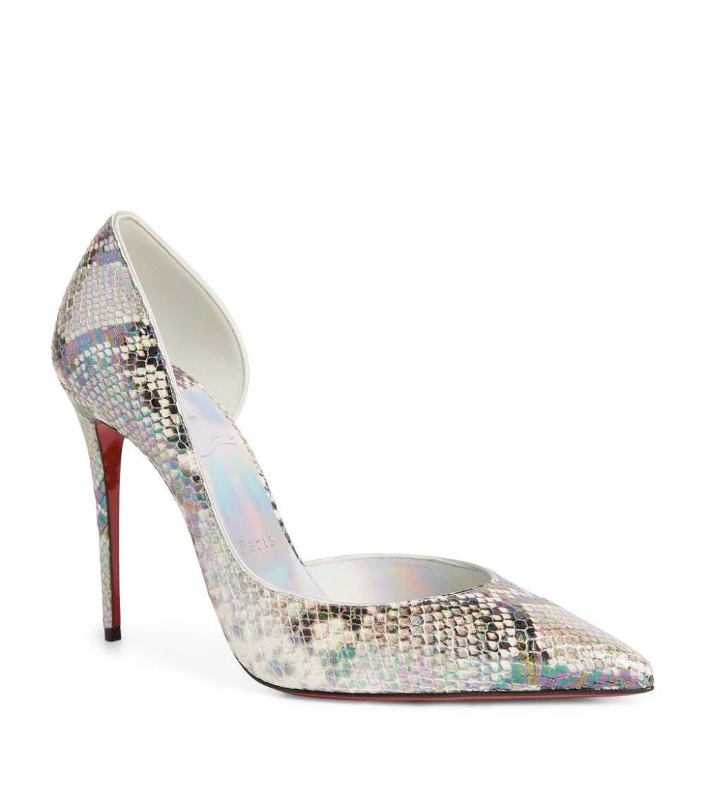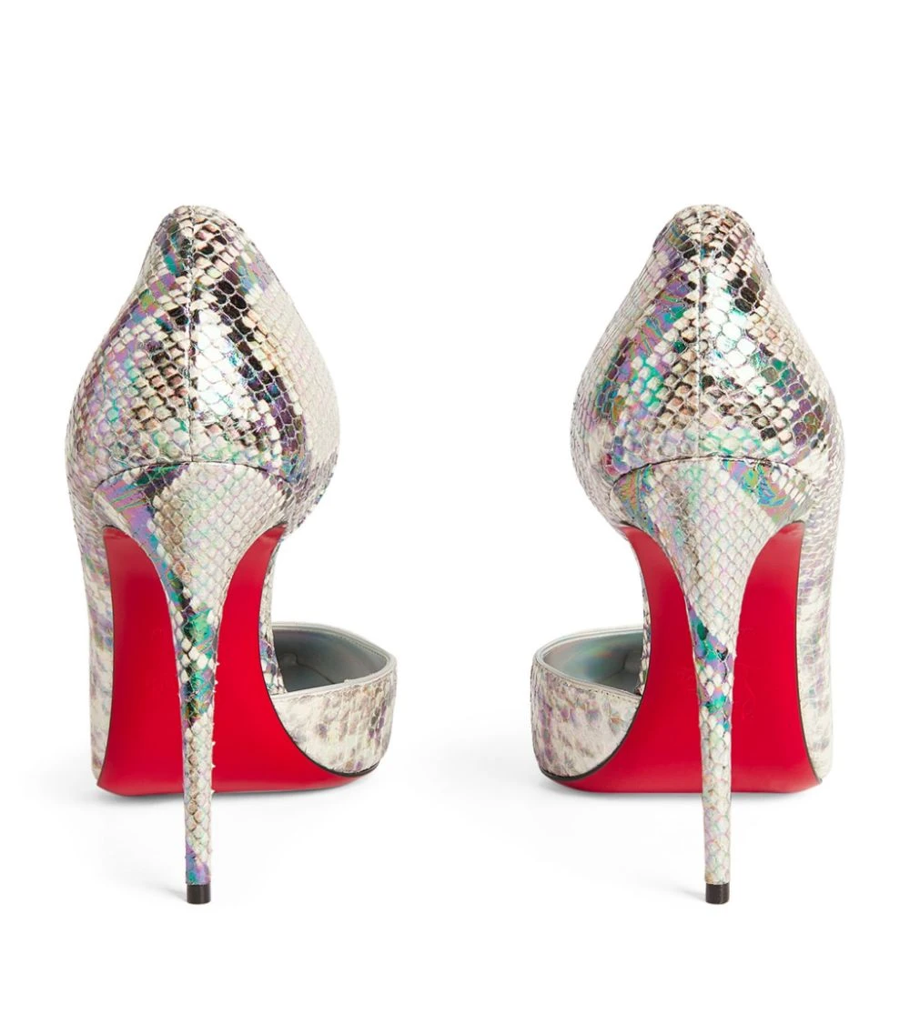 Christian Louboutin updates a footwear classic – the stiletto – with a touch of its recognisable style. Crafted from python-embossed calf leather, the timeless pointed-toe silhouette of the Iriza is elevated to a vertiginous height upon a slim heel, with the opening to the inner side revealing the gentle curve of your foot’s arch. It’s a design that sticks to the style’s tried-and-tested formula, and yet any anonymity it might have is at once withdrawn at the sight of the scarlet red soles – a signature that could only belong to the Parisian shoemaker.Please note, Christian Louboutin’s signature lacquered soles will wear out with use; this is normal wear and tear and is not considered to be a manufacturing defect. Please try these shoes on a carpeted surface, as any damage to the soles may prevent us from accepting returns.
