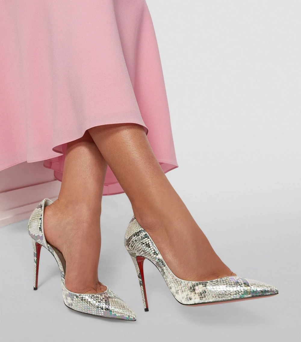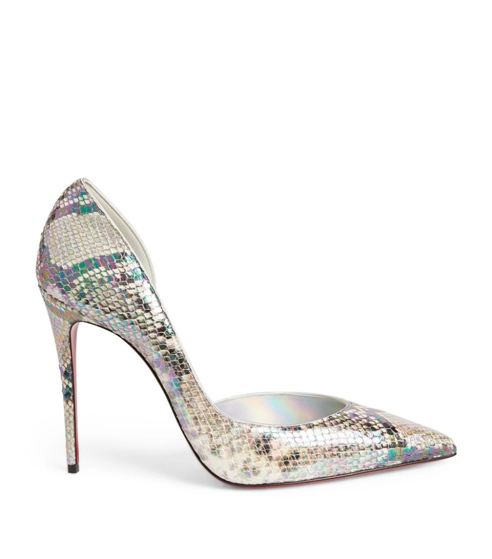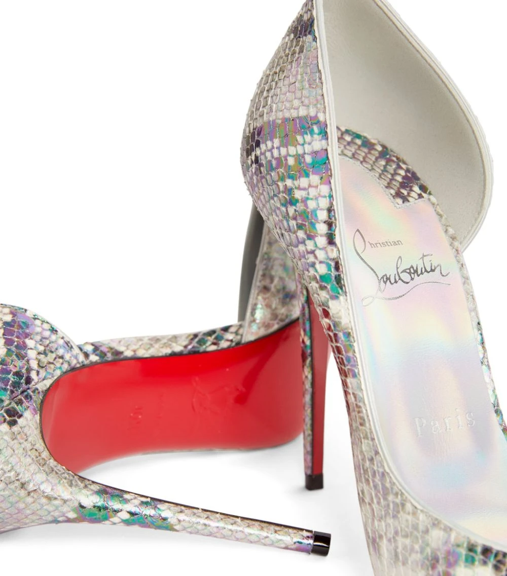 Christian Louboutin updates a footwear classic – the stiletto – with a touch of its recognisable style. Crafted from python-embossed calf leather, the timeless pointed-toe silhouette of the Iriza is elevated to a vertiginous height upon a slim heel, with the opening to the inner side revealing the gentle curve of your foot’s arch. It’s a design that sticks to the style’s tried-and-tested formula, and yet any anonymity it might have is at once withdrawn at the sight of the scarlet red soles – a signature that could only belong to the Parisian shoemaker.Please note, Christian Louboutin’s signature lacquered soles will wear out with use; this is normal wear and tear and is not considered to be a manufacturing defect. Please try these shoes on a carpeted surface, as any damage to the soles may prevent us from accepting returns.