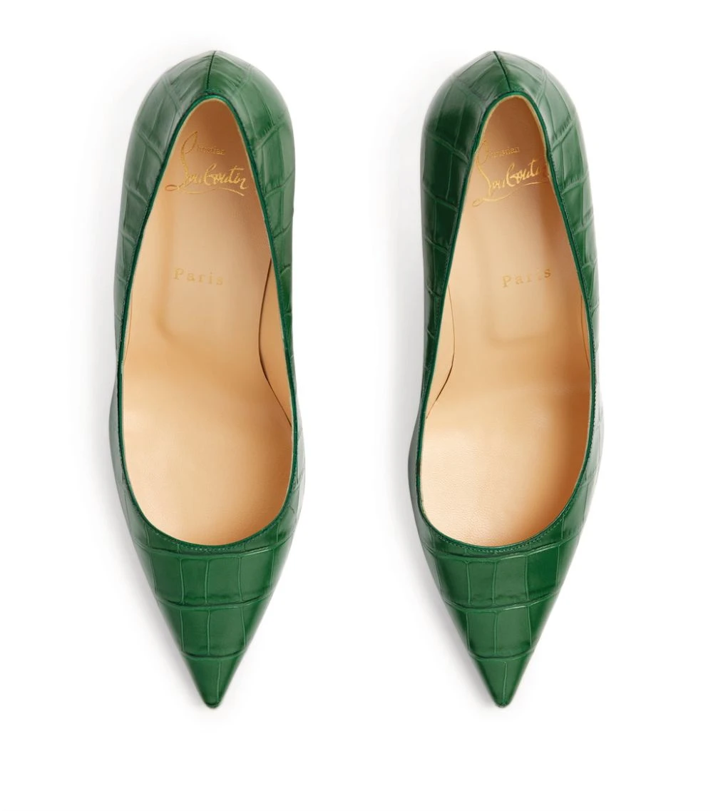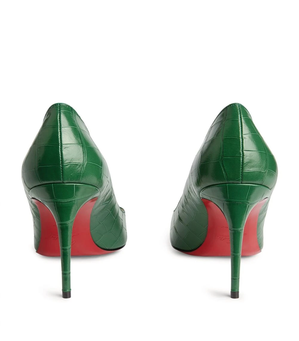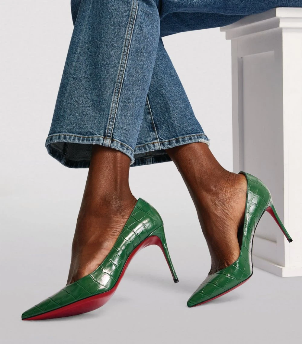 It was his assistant painting her nails that first gave Christian Louboutin the idea for the red lacquered sole, and the motif has since become one of fashion’s most distinctive symbols of exclusivity. When it’s partnered with the Kate pump – a sensual, sculptural silhouette defined by a stiletto heel and croc-embossed leather exterior – there’s simply no shoe that embodies the Maison’s aesthetic more.Please note, Christian Louboutin’s signature lacquered soles will wear out with use; this is normal wear and tear and is not considered to be a manufacturing defect. Please try these shoes on a carpeted surface, as any damage to the soles may prevent us from accepting returns.