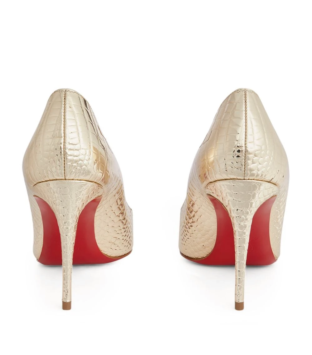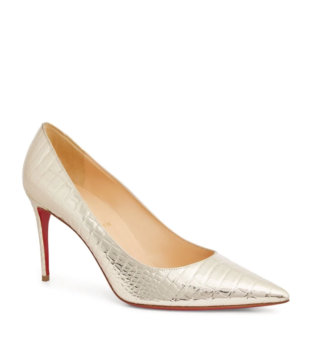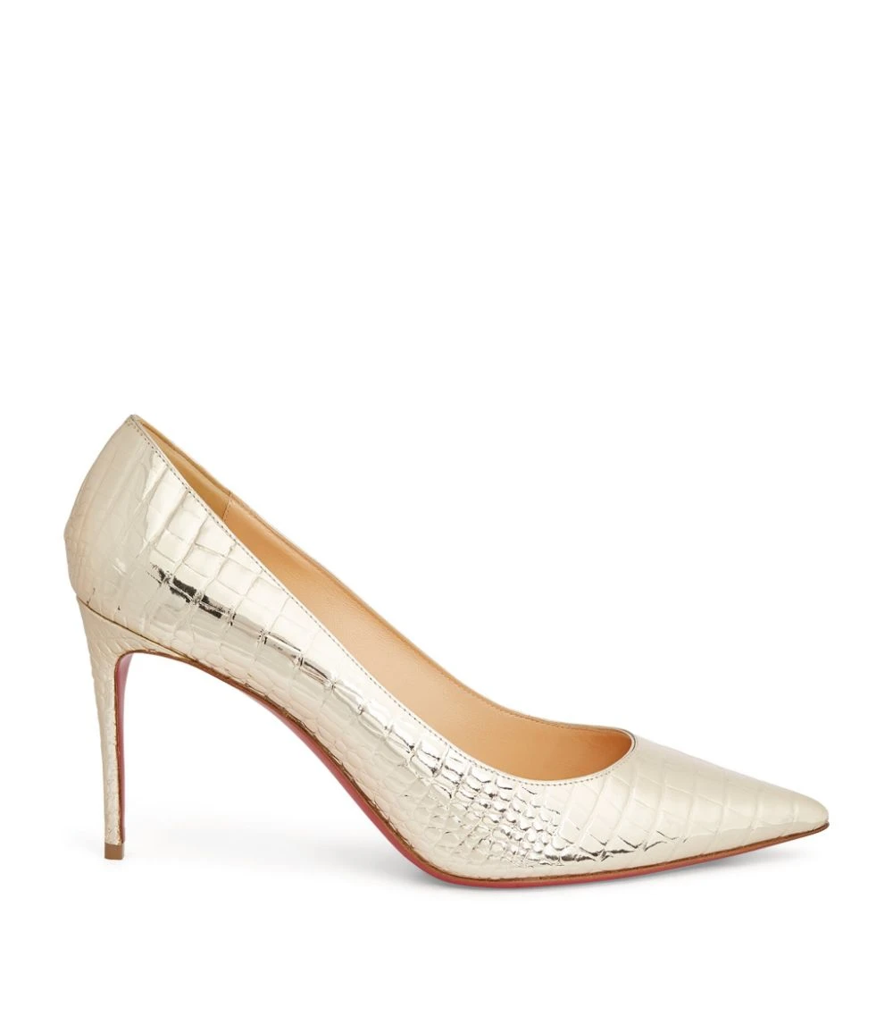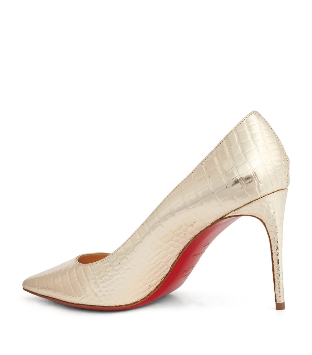 It was his assistant painting her nails that first gave Christian Louboutin the idea for the red lacquered sole, and the motif has since become one of fashion’s most distinctive symbols of exclusivity. When it’s partnered with the Kate pump – a sensual, sculptural silhouette defined by a stiletto heel and metallic, croc-embossed exterior – there’s simply no shoe that embodies the Maison’s aesthetic more.Please note, Christian Louboutin’s signature lacquered soles will wear out with use; this is normal wear and tear and is not considered to be a manufacturing defect. Please try these shoes on a carpeted surface, as any damage to the soles may prevent us from accepting returns.