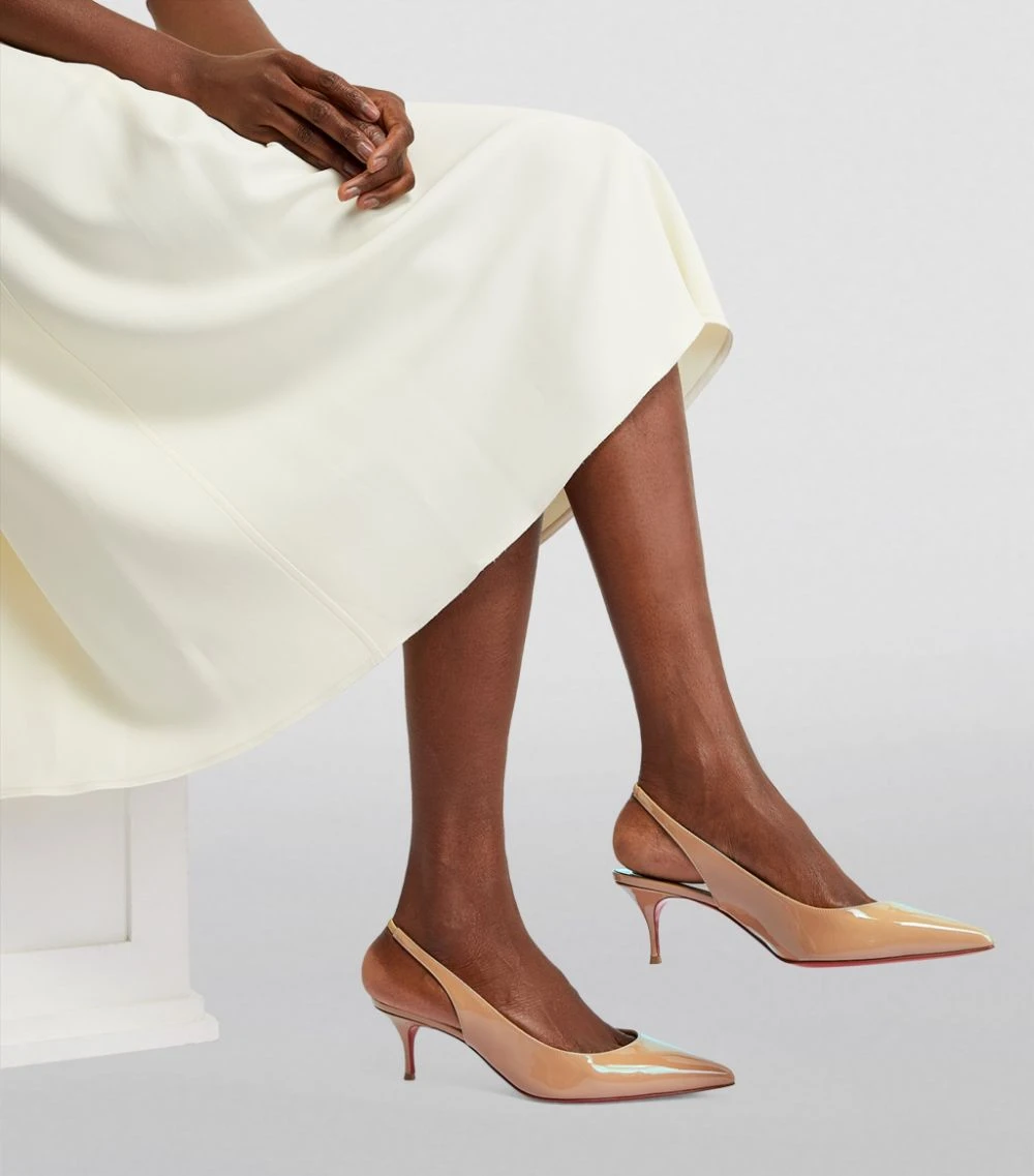 The Kate Sling pumps are a riff on Christian Louboutin’s much-loved classic Kate style, beloved for its elegant curved silhouette and sculptural stiletto heel. Imagined in patent leather, this pair is imbued with much of the same elegance, anchored by a slingback strap and, of course, the ever-iconic lipstick-red sole.Please note, Christian Louboutin’s signature lacquered soles will wear out with use; this is normal wear and tear and is not considered to be a manufacturing defect. Please try these shoes on a carpeted surface, as any damage to the soles may prevent us from accepting returns.