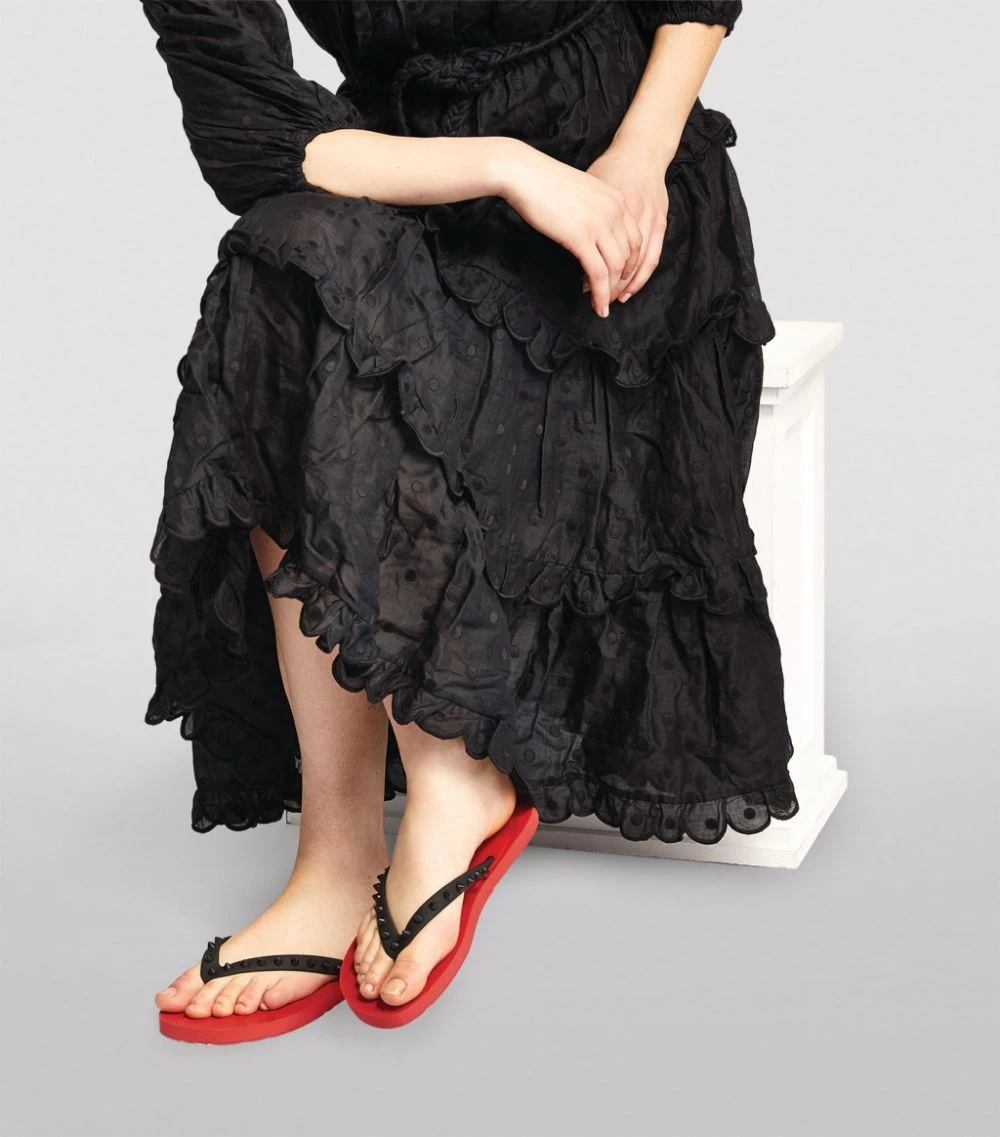 According to Christian Louboutin, the timelessness of a style lies in its groundbreaking simplicity, here evoked by way of the Maison’s most coveted and celebrated trademarks: punk-inspired studs and the signature red sole. The details are given new relevance with the Loubi Flip –a pair of flip flops that will accompany you through sandy shores for years to come.