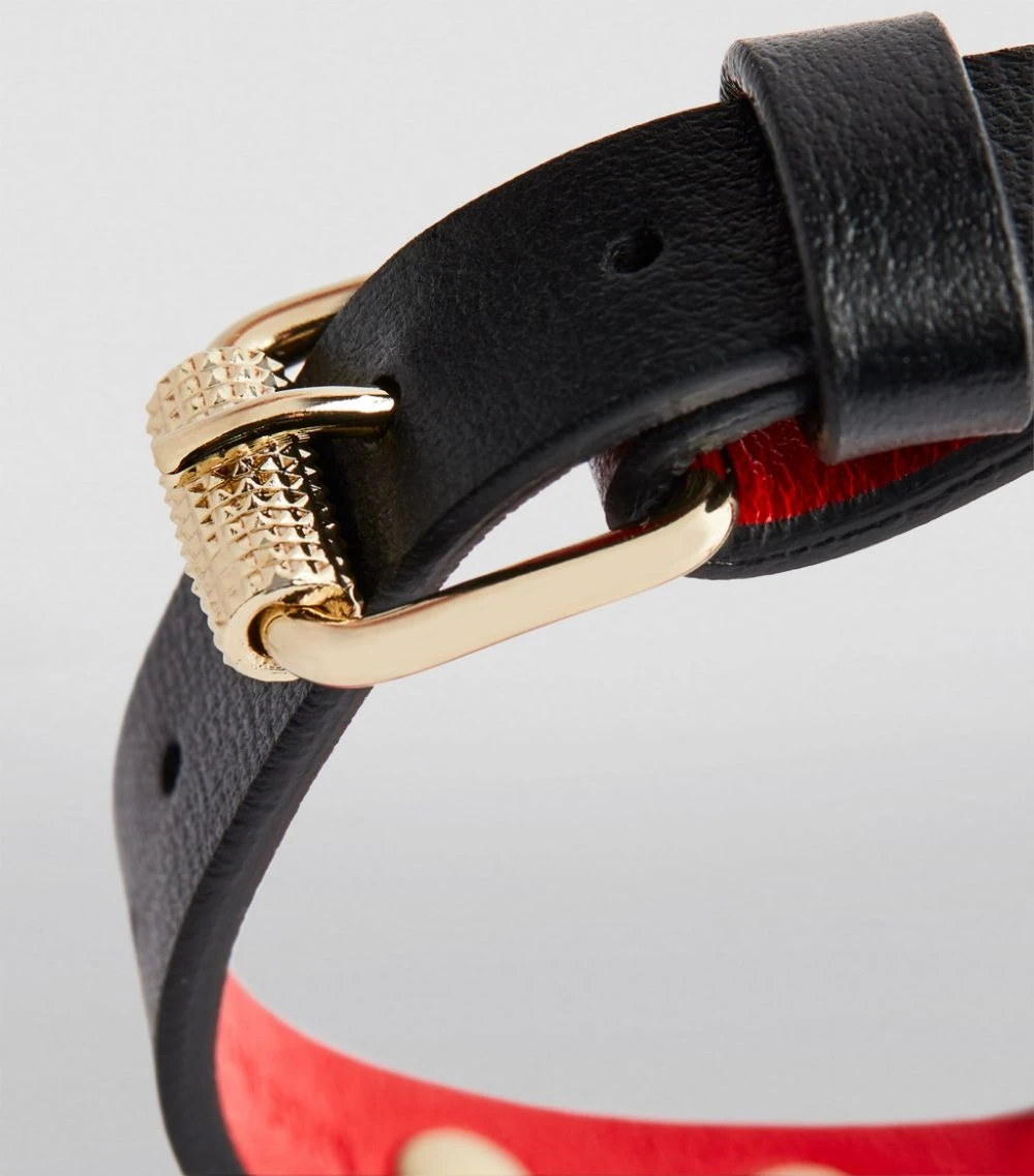 Just like the soles of the coveted stiletto heels, the lining of this bracelet is doused in fiery red.