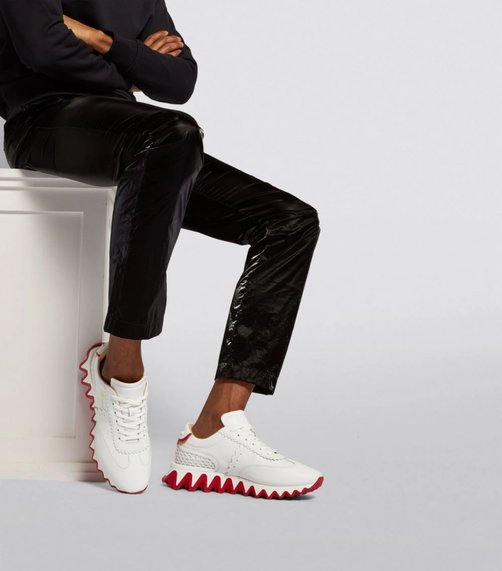 Christian Louboutin’s Loubishark sneaker is so iconic that its debut warranted a dramatic movie-style poster based, of course, on that of Jaws. Much like the film’s Great White, the sneakers boast a formidable set of teeth to their outsole, framed by flashes of signature red in a particularly punk-inspired touch. Elsewhere the runner-style silhouette is notably technical – rest assured that you’re treated to the utmost comfort as you flex the Maison’s most exaggerated, graphic and playful design yet.