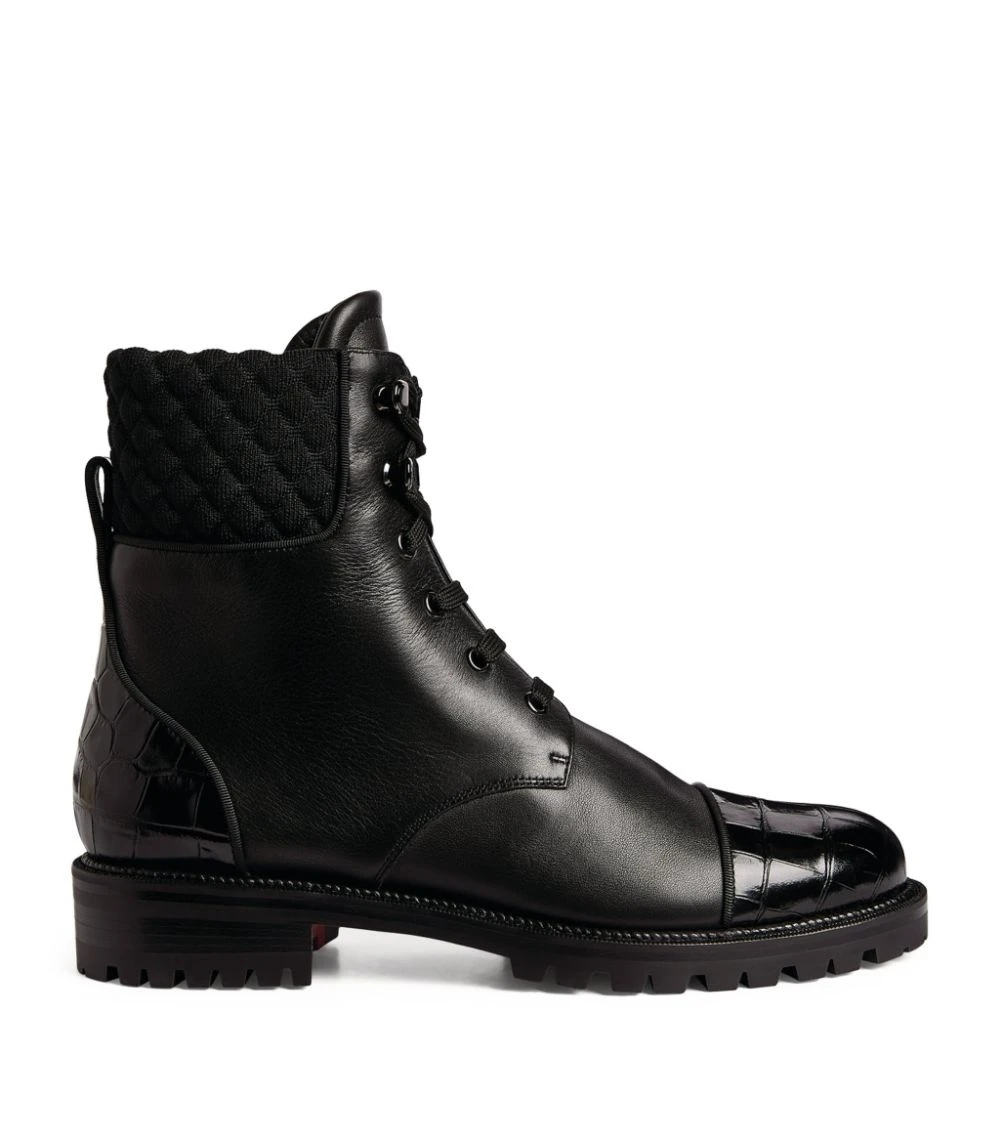 Winter hikes needn’t be sans glamour, as proven by Christian Louboutin’s Mayr boots. Playing with a marriage of textures, the smooth leather pair is juxtaposed against a patent alligator-style embossed toe and a quilted detail to the heel. The result? A comfortable yet playful pair which lends itself to winter denim and summer dresses alike.