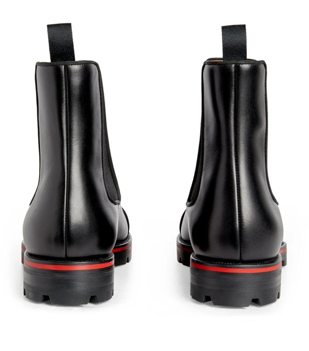 Putting its signature stamp on classic ankle boots, Christian Louboutin presents the Melon pair as the latest style to steal the hearts of fashion-conscious gentlemen. They’re imagined in premium leather with elasticated inserts and a signature red trim – a detail that delivers rock ‘n’ roll appeal. A pull-on-and-go staple, they’re destined to enhance your favourite jeans.Please note, Christian Louboutin’s signature lacquered soles will wear out with use; this is normal wear and tear and is not considered to be a manufacturing defect. Please try these shoes on a carpeted surface, as any damage to the soles may prevent us from accepting returns.