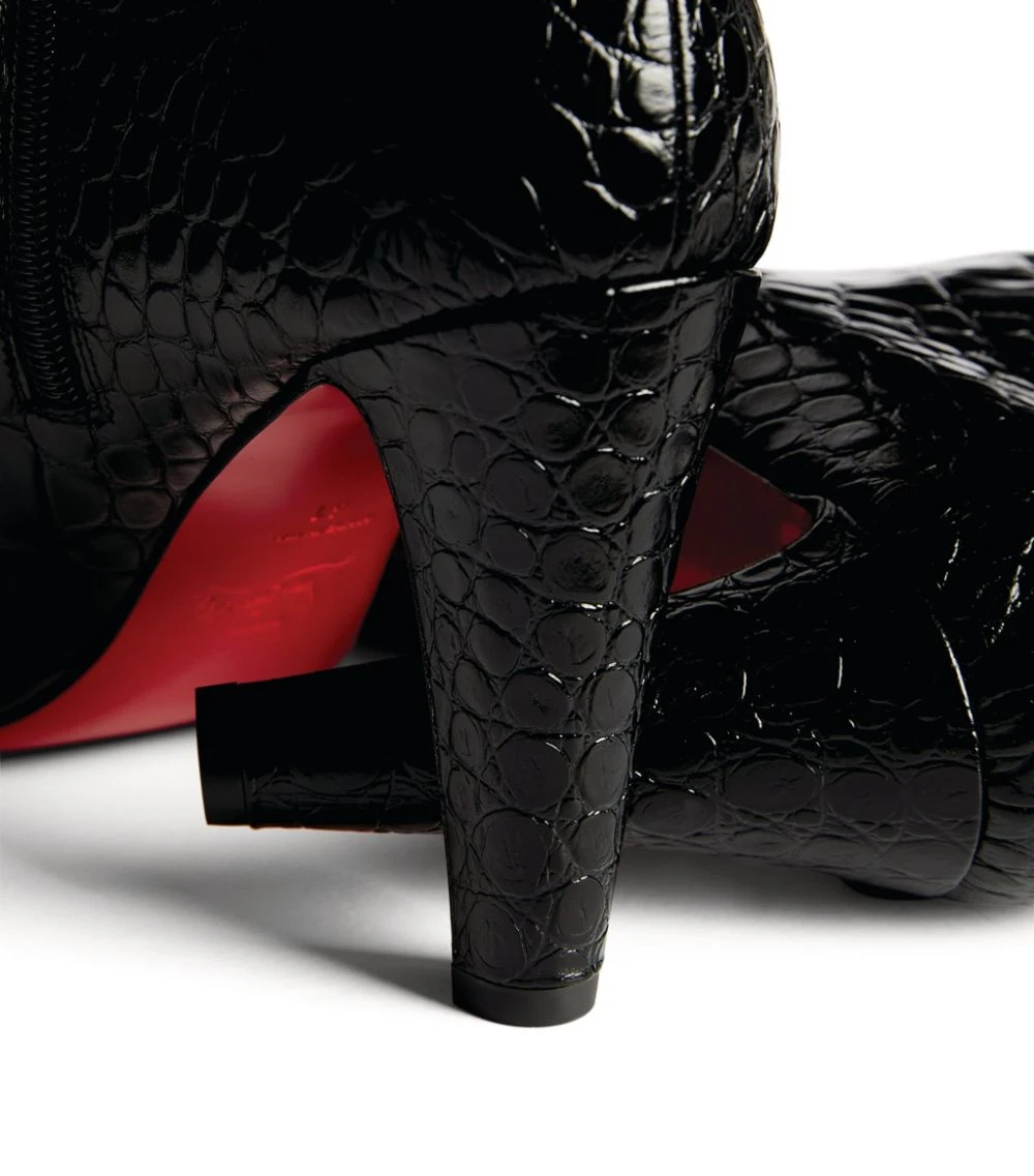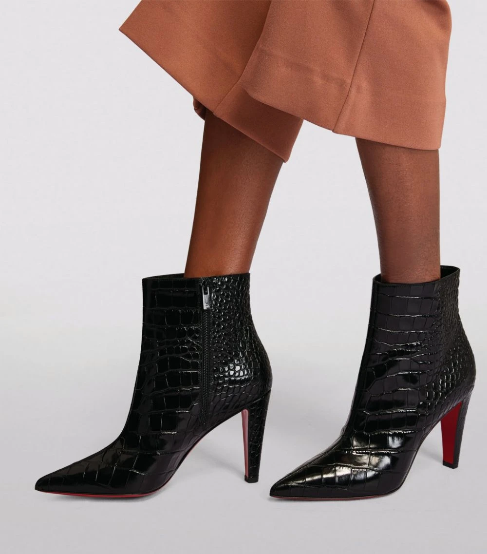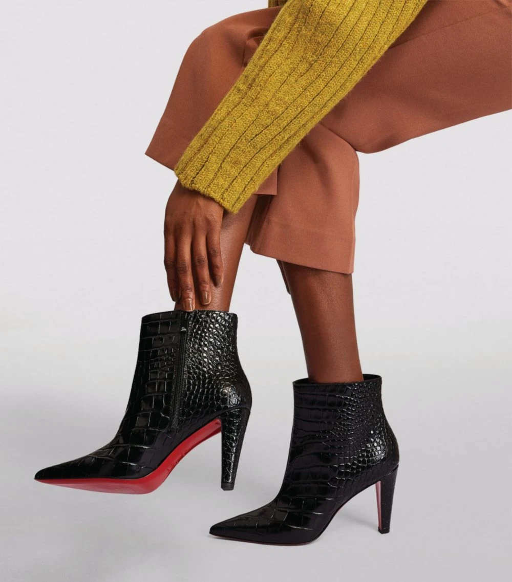 Christian Louboutin reworks a classic silhouette with the Slimini ankle boots, declaring a loud and proud celebration of smooth, curved lines. You’ll notice quiet triumphs across the style, from the retro croc-embossed leather – named Calf Ali – to the pointed almond-shaped toe. See them as your new everyday go-to, flashing the scarlet sole with pride as you navigate city streets.